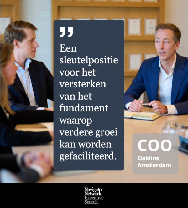 Oaklins Nederland, een gerenommeerd Corporate Finance House, gespecialiseerd in fusies en overnames (M&A), waarderingen, financieringen en beursgangen op de Zuidas in Amsterdam, wil opschalen en verder professionaliseren. Om deze groei in goede banen te leiden zijn wij op zoek naar een Chief Operating Officer (COO).